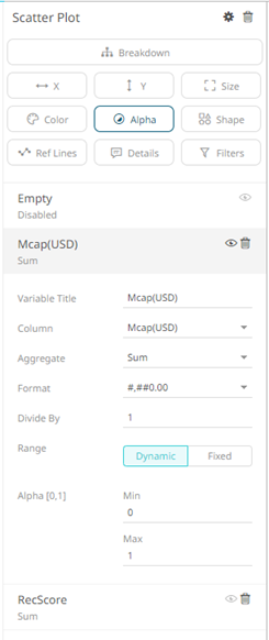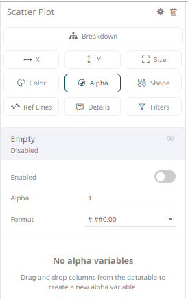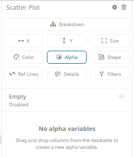 4. To associate other columns from the data table, drag and drop them to the Alpha variable drop area. Select one to display the corresponding configuration pane.