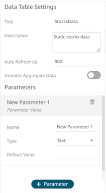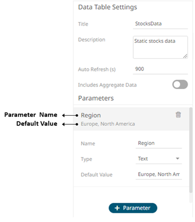 When adding visualizations or parts on the dashboard, the associated data table is checked for defined parameters that will be applied to the dashboard.