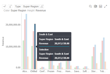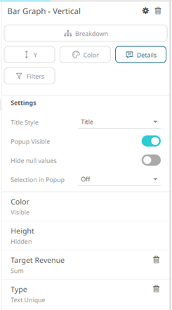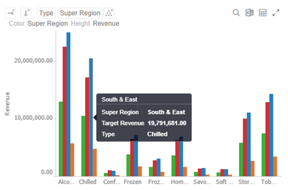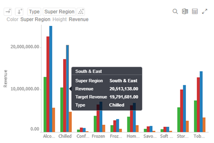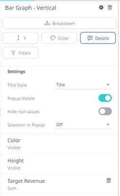 For example, when the Height variable column is Revenue and set to Visible, the value of Revenue is displayed in the Details pop-up.