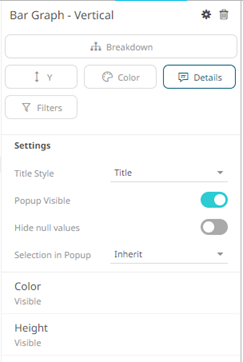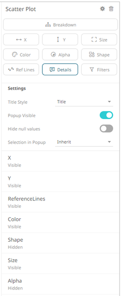 1. Click on the Details button of a visualization. The Details Settings pane displays along with the available variables of the visualization.