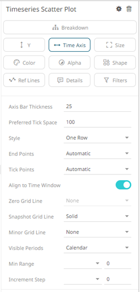 1. Click on the Time Axis variable drop area of a time series visualization. The Time Axis Settings pane displays.