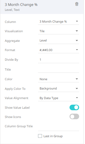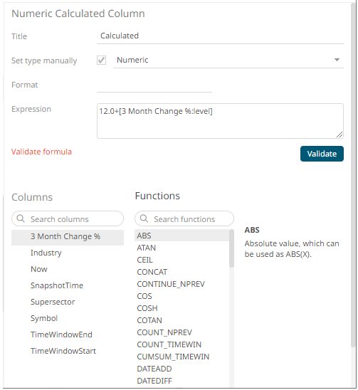 For example: 12.0 + [3 Month Change %:level]