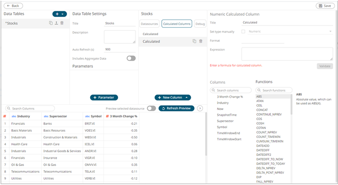 The Numeric Calculated Column pane displays.