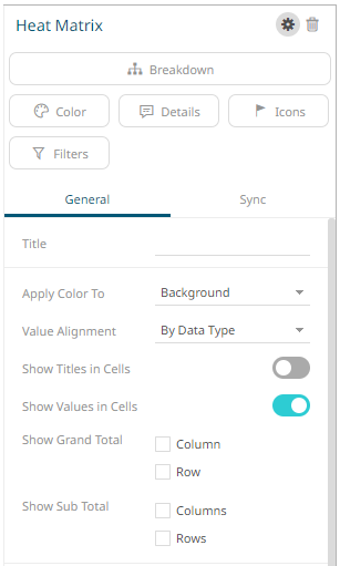 Determines whether to display the grand total of the values of the Color and Detail variables on the Y-axis (either as data in the cells or in the Pop-up). |