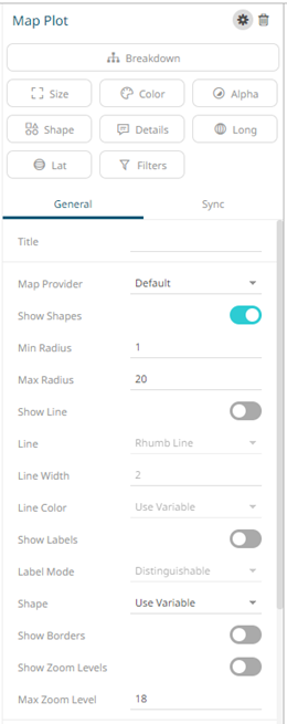 In a Map Plot, the visualization expects Latitude and Longitude measures to be associated. It will then retrieve from the selected map tile provider the appropriate background map to display under the data points. This background map is constructed by retrieving individual map tiles at set zoom levels.