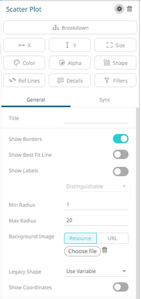 Defines that a background image is displayed behind the scatter plot. You can either: · click Resource · click URL