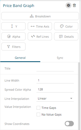 The Pricing Band Graph displays the variance or spread between two time-based metrics.