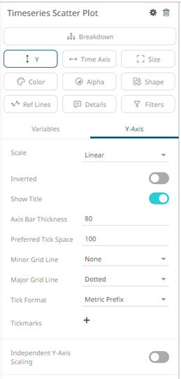 Other visualization-specific properties can be set by clicking on the Y-Axis variable drop area and then selecting the Y-Axis tab: