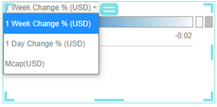 If the visualization can display multiple color variables, which is the case with the Table and Time Combination, then the legend displays a drop list of possible variables to display.