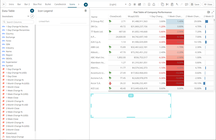 The icon legend is now connected to its parent visualization. It will retrieve icon variables from this visualization and display them in the legend on the dashboard.