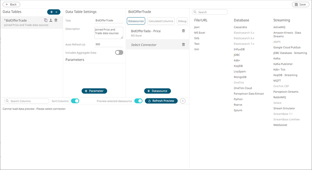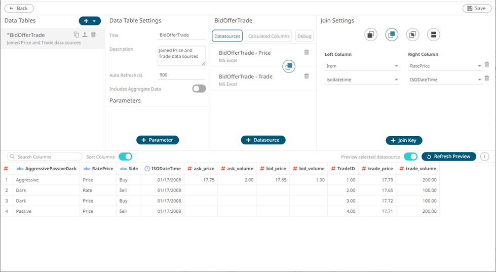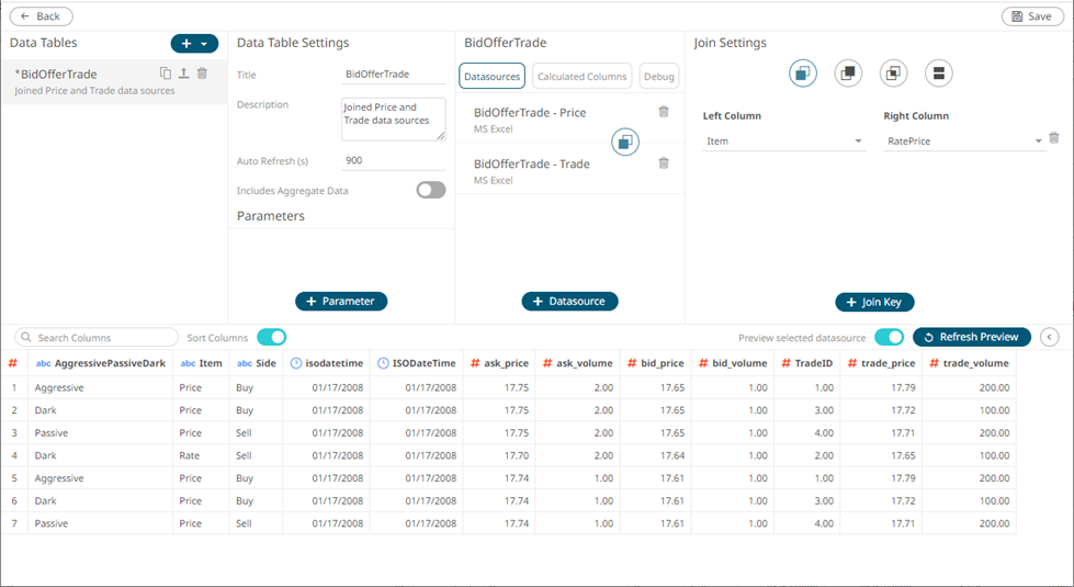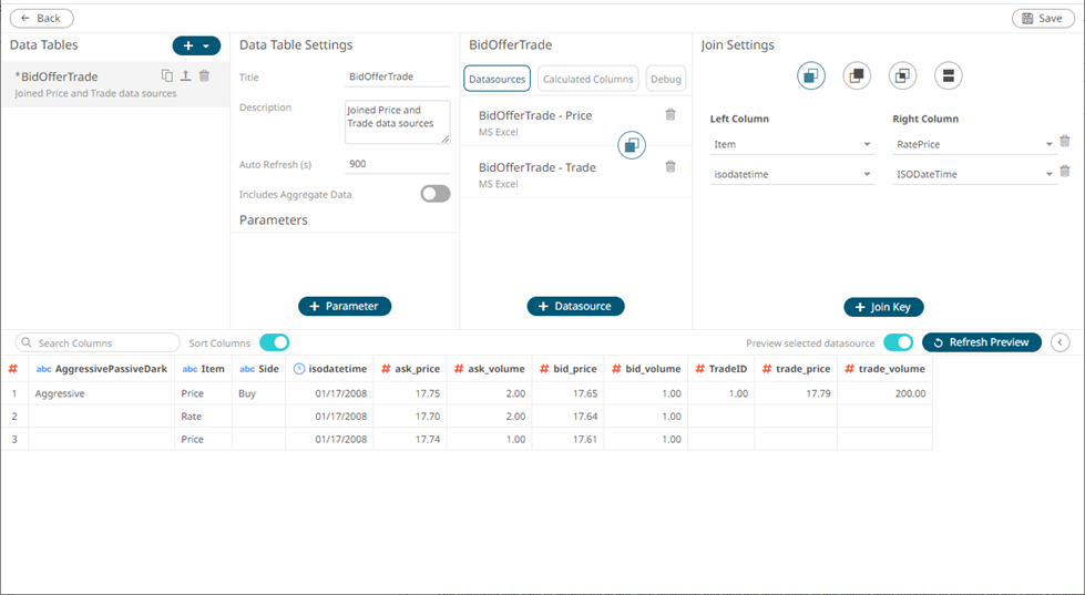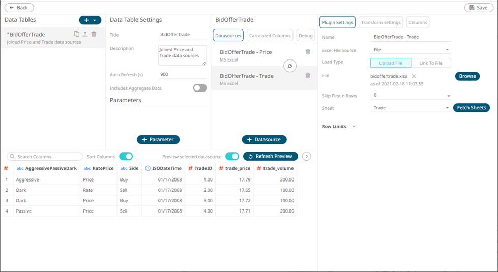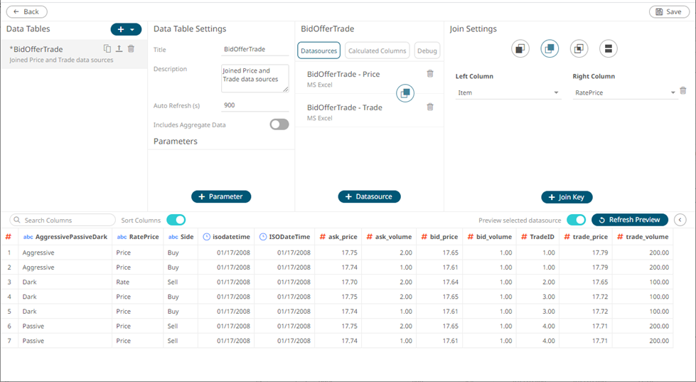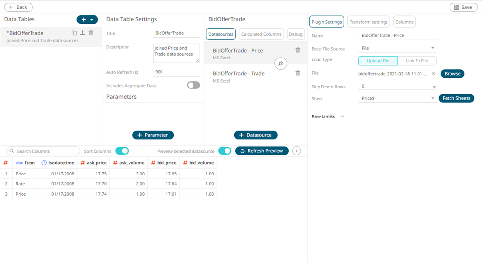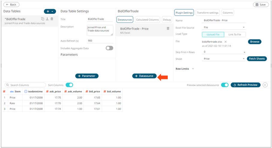To display the other data source (bidoffertrade.xlsx – Price) on the Data Sources Preview area, click the data source.