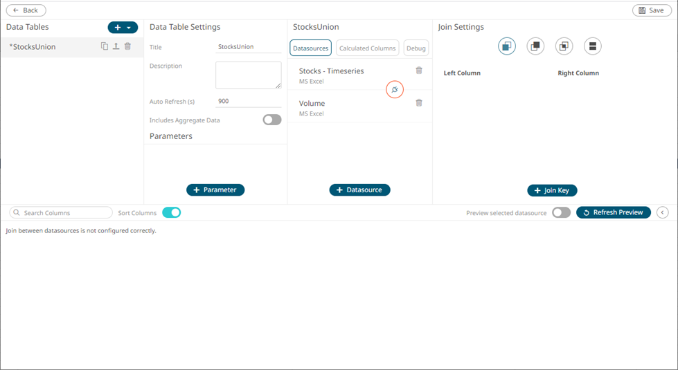 1.     To join the data sources, click the Join  button.