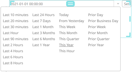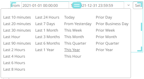 For example, clicking This Year will recalculate the current date range from the start of the current year (January 1, 2021) to the end of the current year (December 31, 2021):