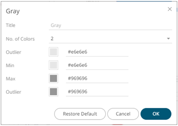· For the selected default color palette, only the Number of Colors and assigned colors can be modified. · Color palettes that are not selected cannot be modified.