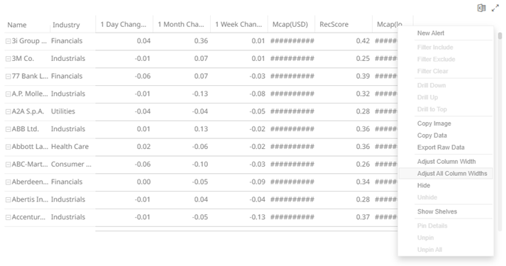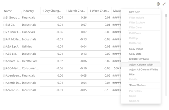 For the table visualization, the width of the columns can be automatically adjusted to fit the contents of a column or all of the columns.