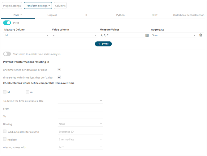 The column named id will be used as the Measure (pivot) column, and value column (v) is the one you will aggregate.