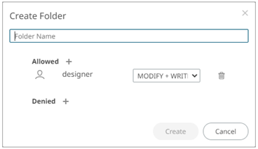 Users that log on with a Designer role: · will have their own personal folder created and displayed on the Workbooks page (e.g., ~designer). This personal folder is where Designers can create workbooks and build dashboards. · is not allowed to create a folder on the root folder.