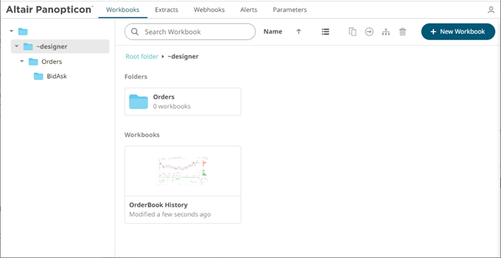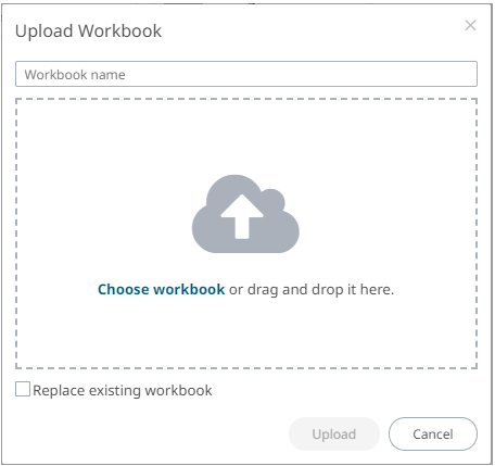 Users with a Designer role can upload and publish workbooks to the currently selected folder in the Workbooks page.