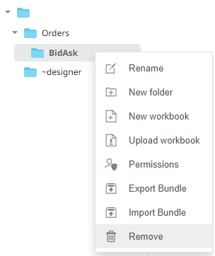 1. Right-click on a workbook or folder and select Remove on the context menu.