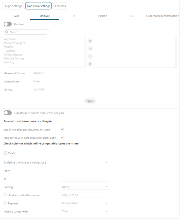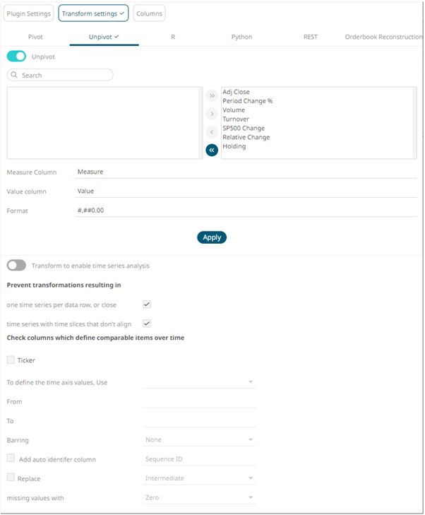 Enabling the time series analysis when you perform an unpivot solves the problem of having to specify all of the values. It also allows you to choose which Time column should be used to specify the time series.