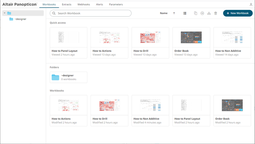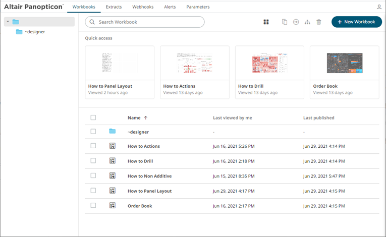 On either display view style, clicking on a workbook title or thumbnail displays the workbook on the Open Workbook in View Mode.