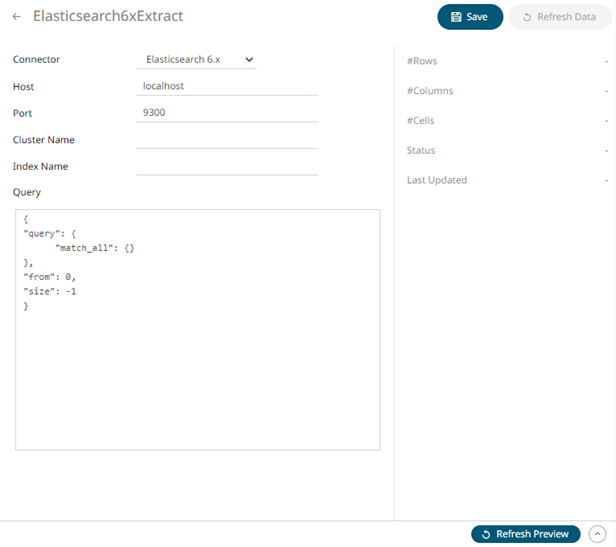 1. On the New Data Extract page, select Elasticsearch 6.x in the Connector drop-down list.
