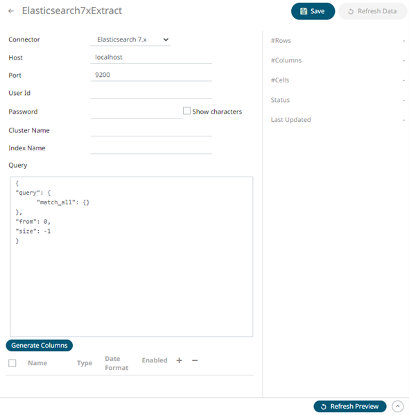 1. On the New Data Extract page, select Elasticsearch 7.x in the Connector drop-down list.