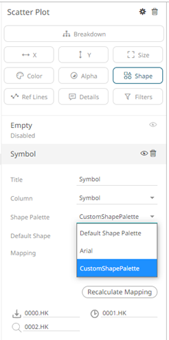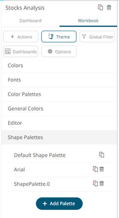 The new shape palette is available in the Shape Palette drop-down list in the Shape variable when the workbook theme, where it is added, is used (i.e., Light).