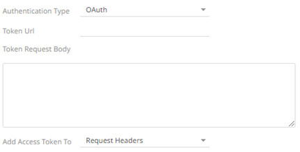 Then enter the following settings: o Token URL – The URL to retrieve the access token from. o Token Request Body – The request body used for access token requests. o Add Access Token To - The Access token retrieved from the Token URL can be added to headers, URL or request body, depending on how the endpoint needs the token.