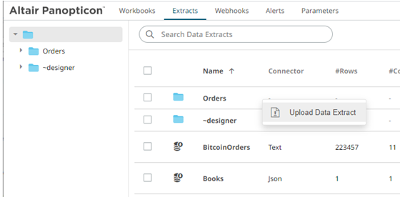 Users with a Designer role can upload data extracts to folders where they have permission.