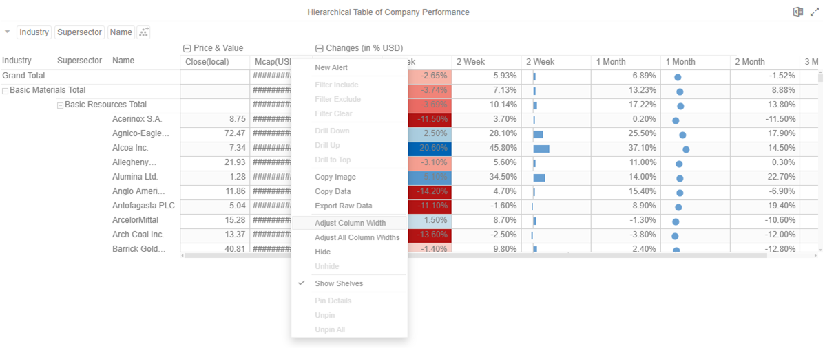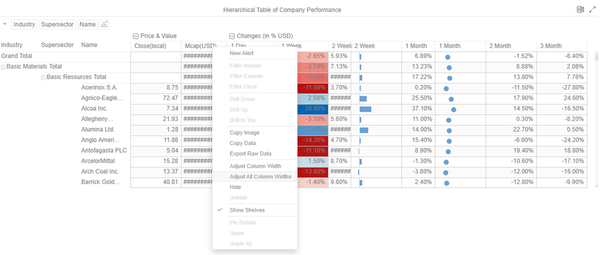 For the table visualization, the width of the columns can be automatically adjusted to fit the contents of a column or all of the columns.