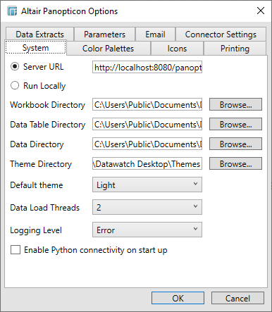 Altair Panopticon Designer (Desktop) Options