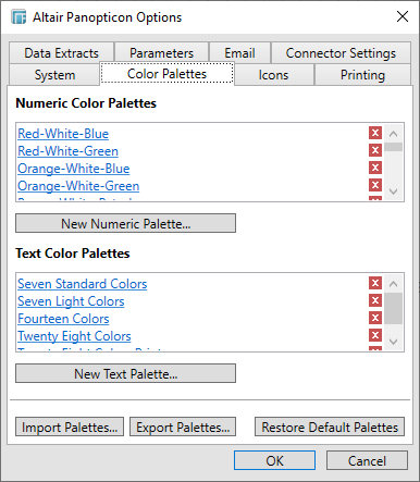 1. Select the Color Palettes tab to define the color palettes that will be available for use within workbooks.