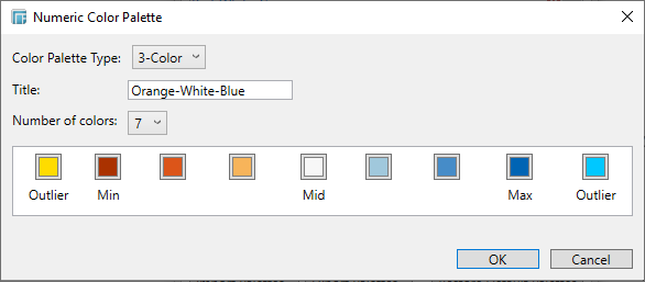 1. Confirm the name then click any color box to display the Color dialog and select a new color. Click OK to add this new palette to the Panopticon Designer (Desktop).