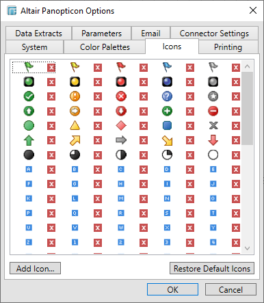 1. Select the Icons tab to define the icons that will be available for use within workbooks.