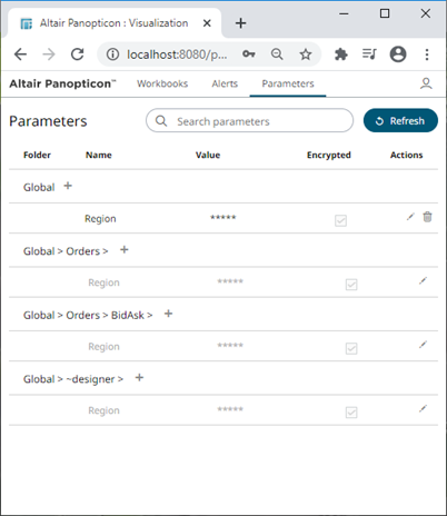 NOTES: Encrypted parameters are set to empty, hence you need to manually enter their parameter values in Panopticon Designer (Desktop).