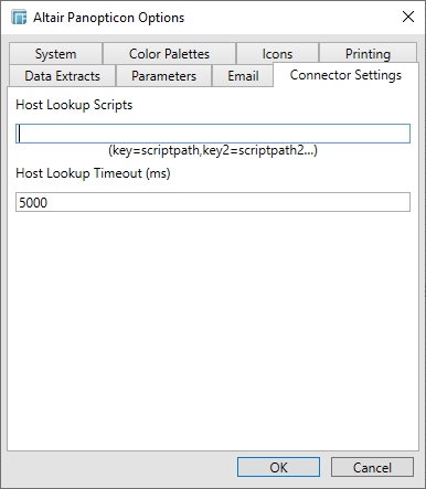 When a key is used in the connector, it is searched in the Altair Panopticon Connector Settings and the corresponding shell script is run to get the host information.