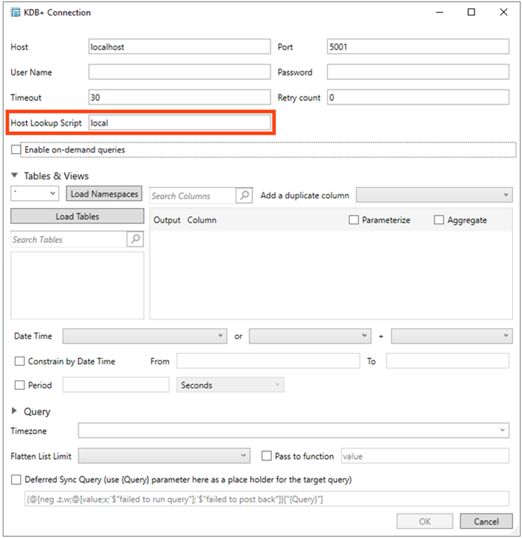 Specifying the formatted key as the Host Lookup Script value, the Host, Port, User Id, and Password entries in the connector dialog will be disregarded.