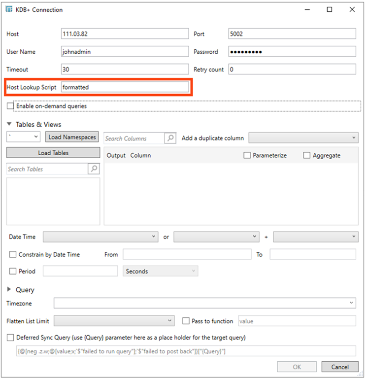 Specifying the formatted key as the Host Lookup Script value, the Host, Port, User Id, and Password entries will be disregarded.