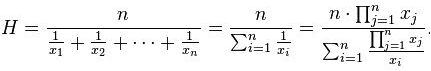 Typically, it is appropriate for situations when the average of rates is desired. The Harmonic mean H of the positive real numbers x1, x2, ..., xn > 0 is defined to be