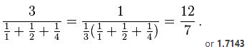 As a simple example, the Harmonic mean of 1, 2, and 4 is: