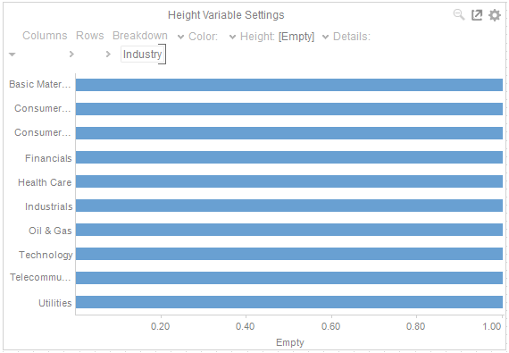 For example, in this Bar Graph – Horizontal visualization, the Industry column is added as the breakdown, when the [Empty] value is selected, the Height will be set to 1 (0 to 1.00):