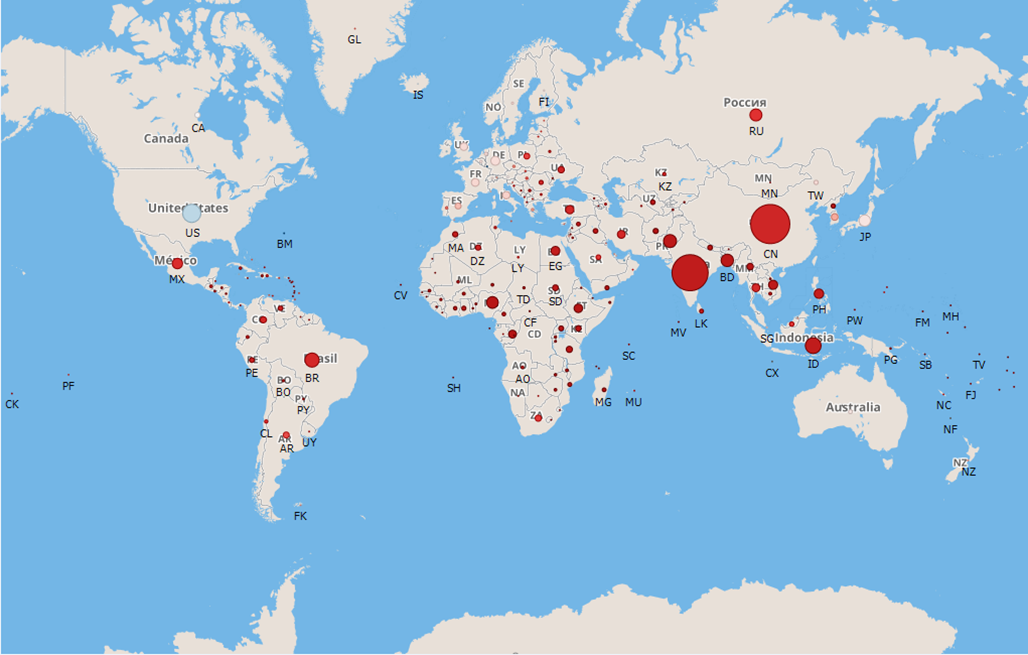 In a Map Plot, the visualization expects Latitude and Longitude measures to be associated. It will then retrieve from the selected map tile provider the appropriate background map to display under the data points. This background map is constructed by retrieving individual map tiles at set zoom levels.