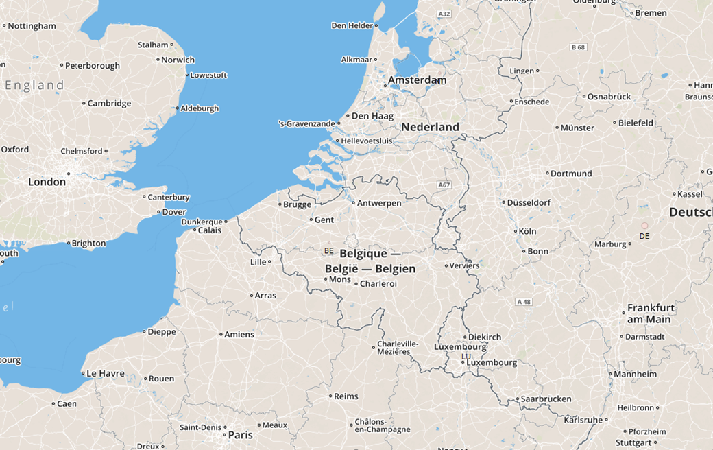 Figure 3. Map Plot of the Netherlands, Belgium, and surrounding countries.