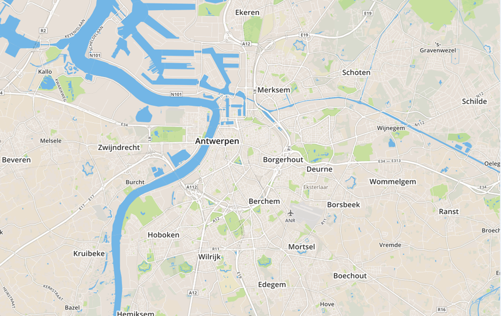 Figure 4. Map Plot of Antwerp and the surrounding area.