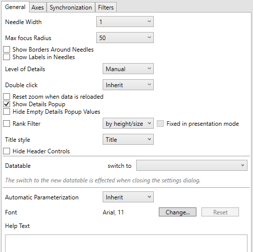 NOTE: This is overridden when a column is added in the Size variable. Consequently, the width of the needles will be based on the comparison of their size in relation to where they are located on the X-axis.