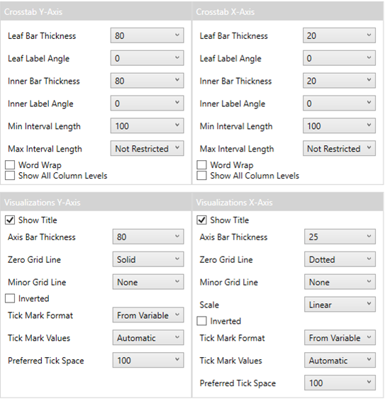 Refer to Cross Tab Axes and Visualizations Axes for more information.