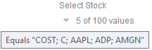 Hovering on an active Multiple Selection Drop Down List filter displays the current selected values.