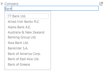 NOTE: The default selection mode when the Text filter column has 0 to 15 values.