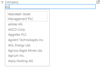 Shows a list of distinct items that are alphabetically sorted. Multiple items may be selected.